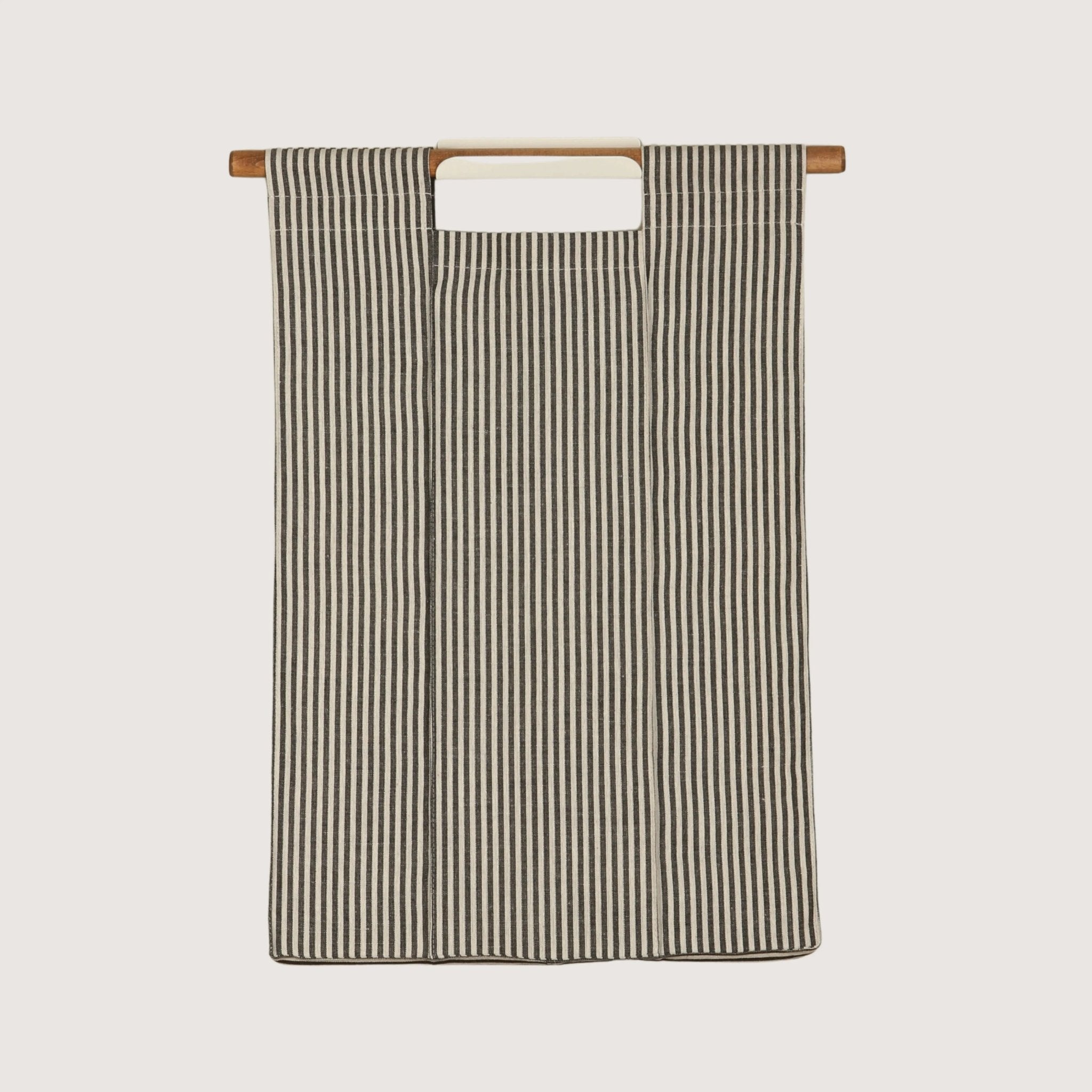 Laundry basket hamper crafted from a durable fabric with beechwood handles so that it’s easy to haul dirty clothes off to the laundry room.