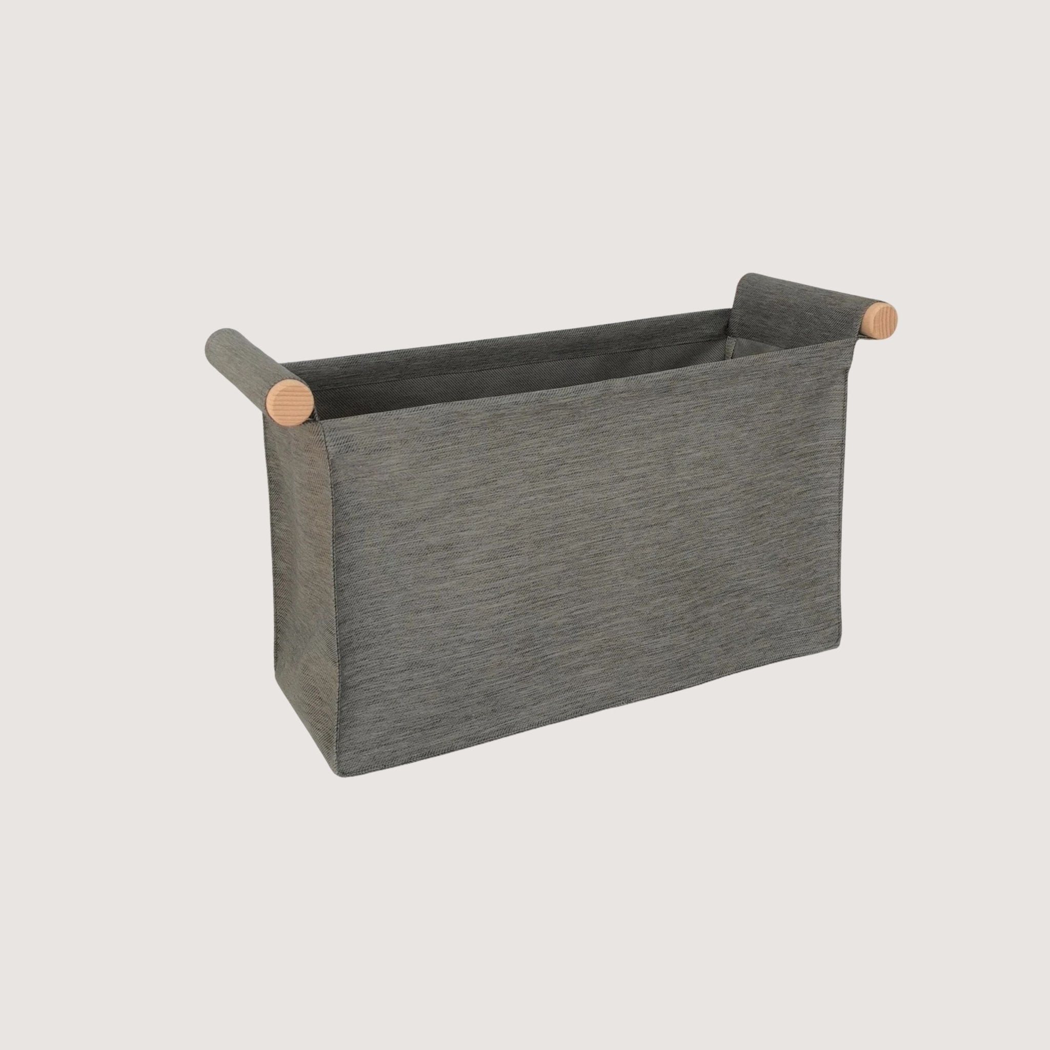 Baskets crafted from a durable fabric with two beech wood hooks .