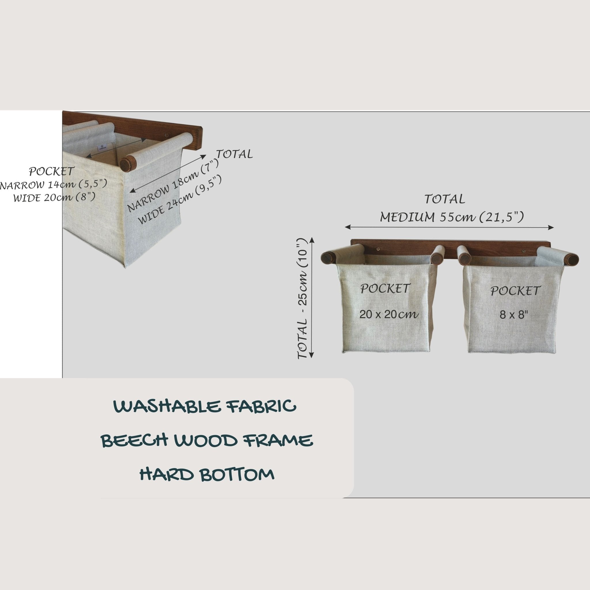MEDIUM NARROW – Width 20cm (8″) x Depth 14cm (5.5″) (pocket height – 20cm (8″))